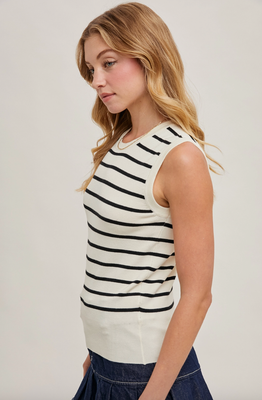 Black Striped Muscle Knit Tank
