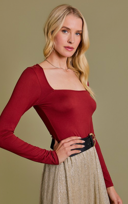 The Brick Square Neck Bodysuit is a sleek, flattering staple that elevates any outfit. Featuring a modern square neckline and a rich brick hue, this bodysuit offers a smooth, fitted silhouette that stays perfectly in place. Made from soft, stretchy fabric, the Brick Square Neck Bodysuit pairs effortlessly with jeans, skirts, or trousers for a polished, confident look day or night.