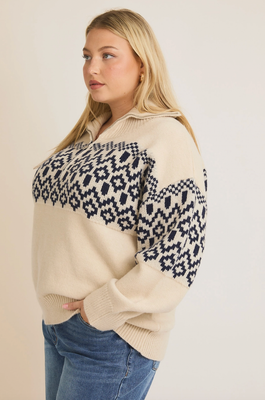 Curvy Half Zip Abstract Sweater