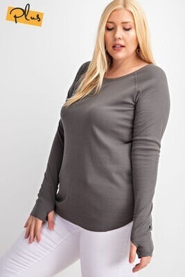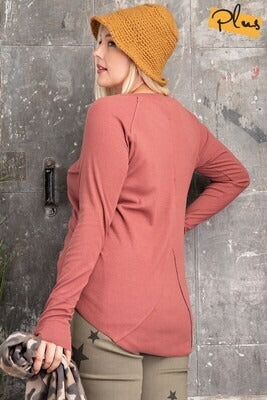 Stay cozy and stylish with the Curvy Ribbed Raglan with thumbholes, designed to flatter plus-size figures while providing all-day comfort. Featuring soft ribbed fabric, a relaxed fit, and convenient thumbholes, this top adds a sporty-chic touch to your casual wardrobe. Perfect for layering or wearing on its own, the Curvy Ribbed Raglan pairs effortlessly with leggings, jeans, or joggers for a comfortable and versatile look.