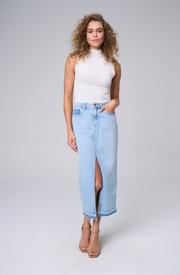 Front Slit Light Denim Midi