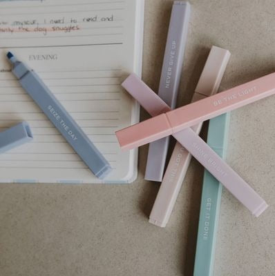 Neutral Highlighter Set, featuring motivational messages and muted tones for a subtle, elegant touch. Perfect for journaling, planning, or studying, this set is a stylish and calming addition to any stationery collection, ideal for those who love a minimalist aesthetic.