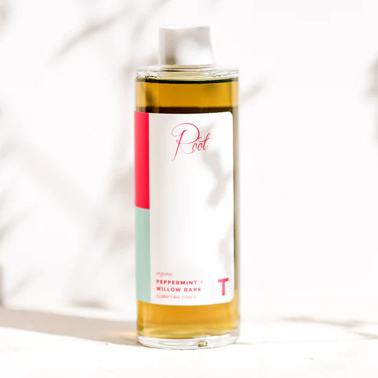 Our Certified ORGANIC PEPPERMINT + WILLOW BARK CLARIFYING TONER deeply cleans, exfoliates & tones skin while tightening pores. The natural salicylic acid in white willow bark extract gently treats acne. #ROOTPRETTY