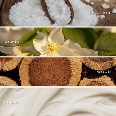 SCENT NOTES: • Top: Sea Salt, Jasmine • Middle: Wood • Base: Cream